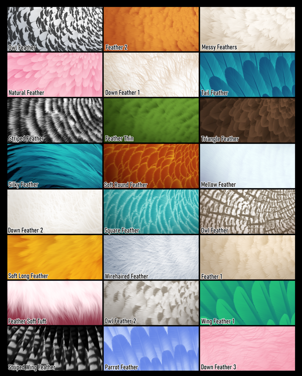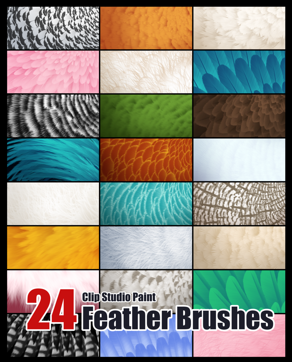 I finally just made my first brush pack for Clip Studio Paint! A lot of work went into this and I can finally share it with you. All of the feathers are made so you can choose two different colors and they will be mixed nicely and create the texture you want~